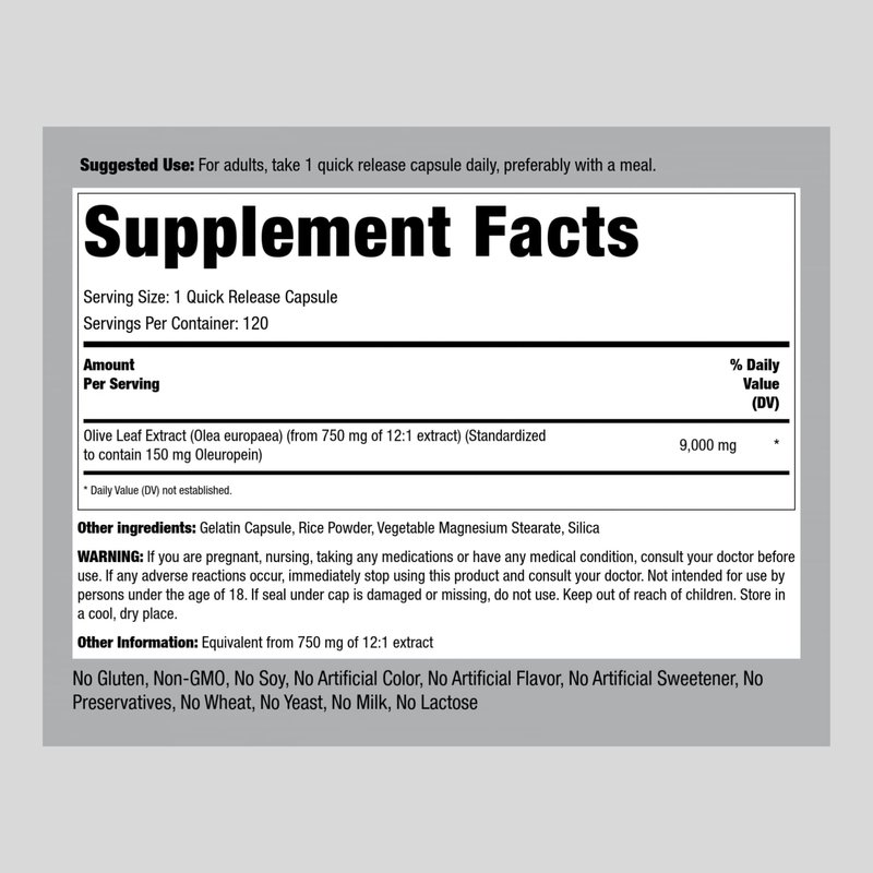 - 9,000 mg of Olive Leaf