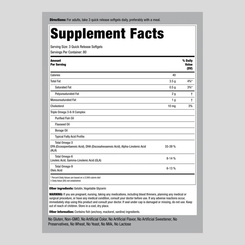Piping Rock Omega 3 6 9 Supplements | 3600mg | 240 Softgel Capsules | Fish Flax Borage | Ultra Strength | Non-GMO, Gluten Free