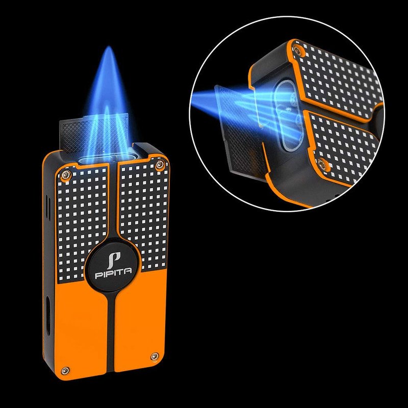 PIPITA Cigar Lighter and Cigar Cutter Set (2pcs/Set), Jet 3 Flame Cigar Lighter Torch and Cigar Cutter , Packing with Nice Gift Box (Yellow)