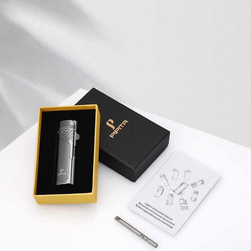 PIPITA Torch Lighter Windproof Cigar Lighter Jet Quad Flame Refillable Butane Cigarette Lighter with Punch (Without Butane Gas)