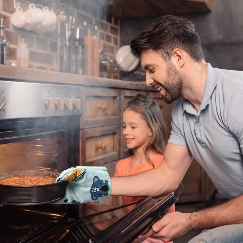 - PRACTICAL OVEN MITT AND POT PAD: Thick oven mitt and pot holder provide heat protection, high heat resistance allows kids to remove dishes from the oven