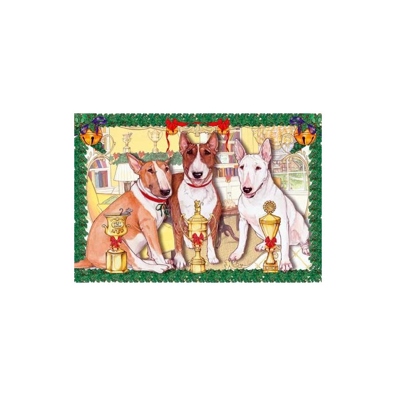 Celebrate the joy with friends and family with these caring and adorable Bull Terrier Christmas Cards. Each Holiday Card has the inside saying "May all the warmth and peace of the Holiday Season be yours."