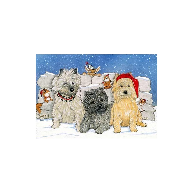 Celebrate the joy with friends and family with these caring and adorable Cairn Terrier Christmas Cards. Each Holiday Card has the inside saying "Wishing you a joyful Holiday Season."