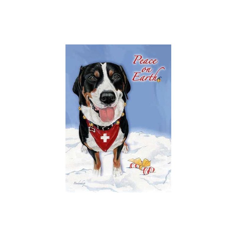 Celebrate the joy with friends and family with these caring and adorable Greater Swiss Mountain Dog Christmas Cards. Each Holiday Card has the inside saying "Peace on Earth, Goodwill to all."