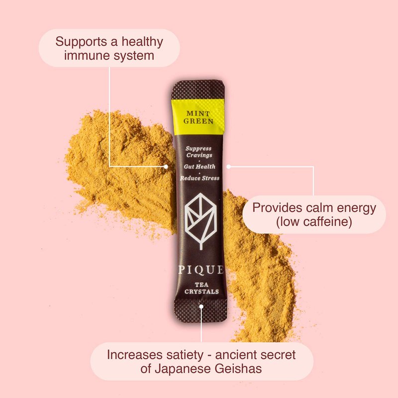 Pique Organic Mint Green Tea Crystals - Support Healthy Digestion, Immunity and Energy. Caffeinated Green Tea with Spearmint - 28 Single Serve Sticks - 28 Single Serve Sticks (Pack of 2)