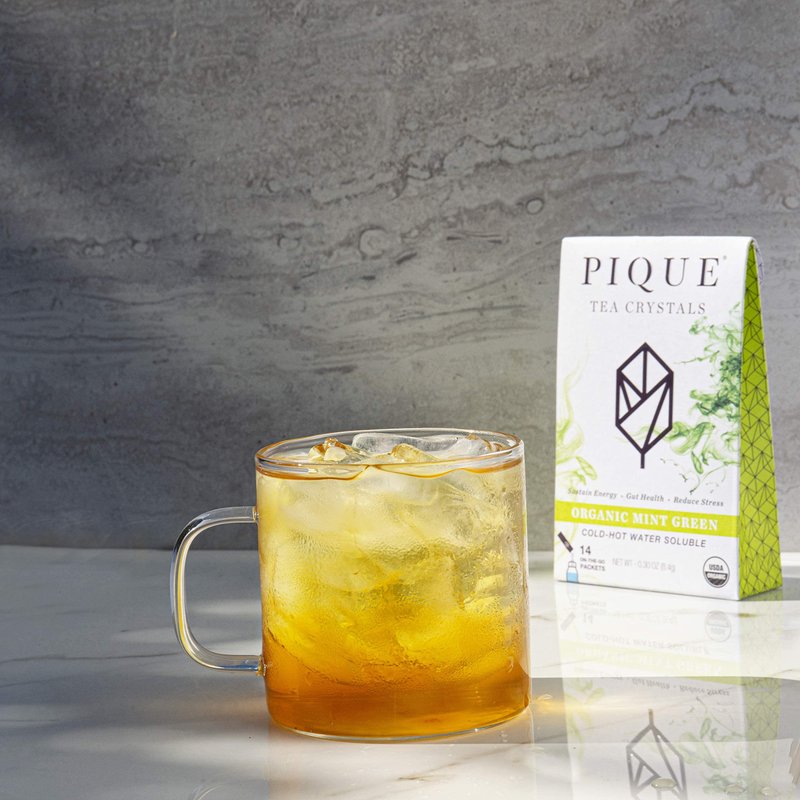 Pique Mint Green Tea is a refreshing spearmint and green tea blend. Made via the perfect pairing of exquisite shade grown Japanese sencha green tea and fresh Oregon spearmint. A bright and clear mint green tea with reduced caffeine. Cold or Hot water soluble. Each carton has 14 single serve packets. No steeping required. Simply tear, mix and drink.