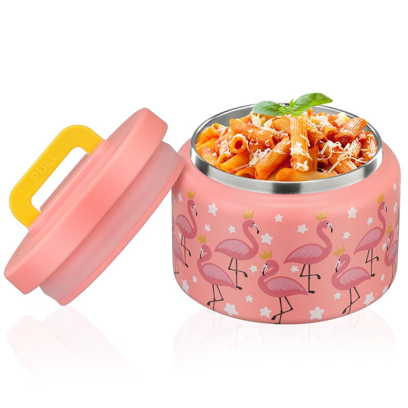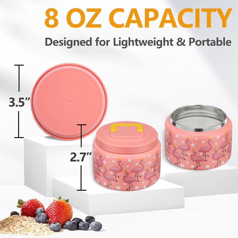 PIQUEBAR 8 Ounce Kids Thermo For Hot Food Vacuum Soup Thermo Insulted Food Jar, Lunch Container Food Thermo for School, Travel, Stainless Steel(Pink Flamingos)