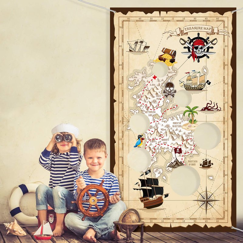 - Good pirate birthday party supplies: this pirate themed party game banner is printed with chic treasure map pattern, suitable for indoor and outdoor party decoration