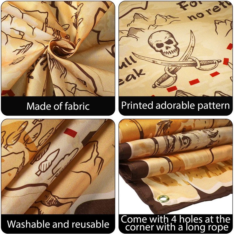 - ☀ Huge Fabric Pirate Treasure Map - The pirate map size is almost 3x3 feet,large enough to use as home wall background decoration. It's made of thick polyester fabrics with vibrant printing, seamless, durable, lightweight and non-fading. Your kids will sure love this pirate gift!