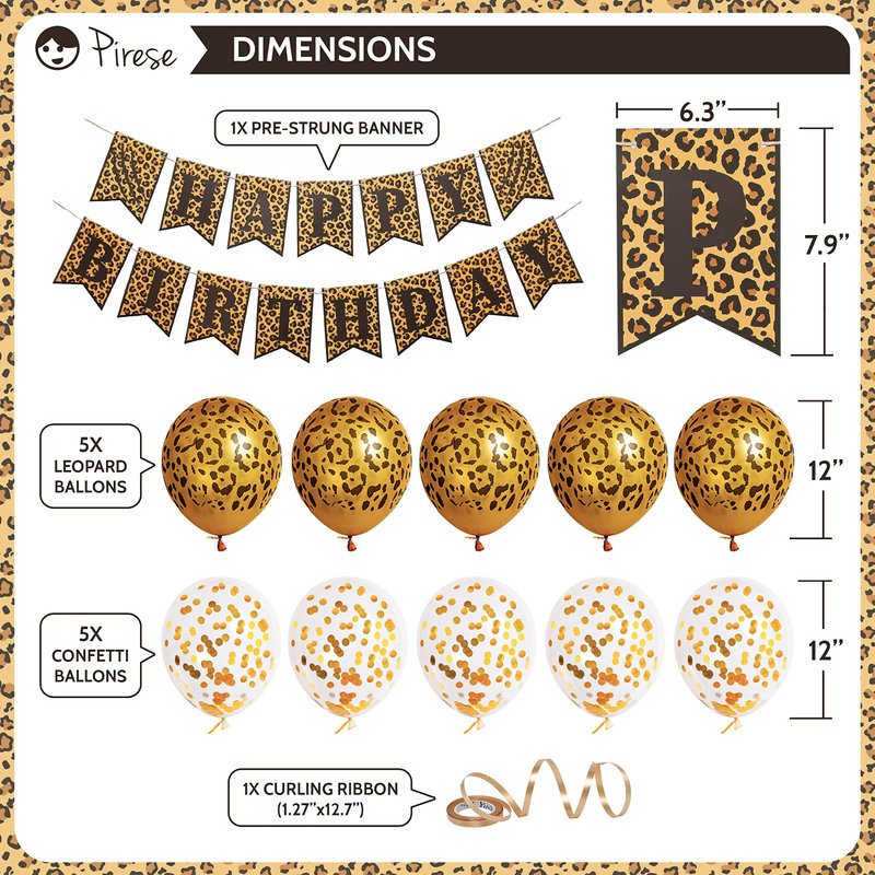 - EASY TO ASSEMBLE: Our Cheetah print party kit comes with a pre-strung banner ready to hang where you want with the beautiful confetti and cheetah print balloons! Don't forget to rub the confetti balloons with your hair, silk or wool, to impress your guests with a beautiful confetti distribution.