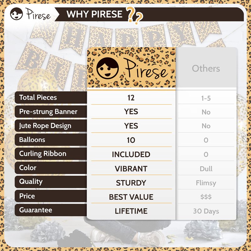 Pirese's premium products come with high-quality standards to keep your party-planning mind at ease, with safe and high-quality materials. We strive for your satisfaction, and if for any reason something just went unexpected, just contact us at any time, we will be pleased to help you!