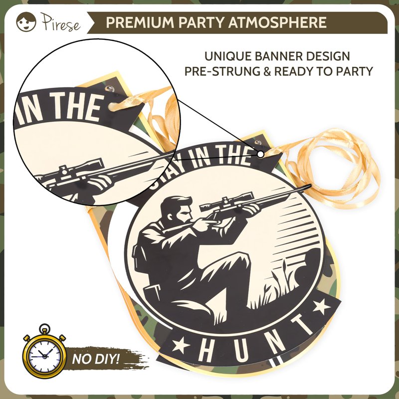 - EFFORTLESS SETUP, Maximum Fun: Say goodbye to party planning stress! Our all-in-one kit, comes PRE-STRUNG and makes setting up a hunting theme birthday decorations a breeze. Hang the banner, inflate the balloons, and let the energy and excitement fill the air!