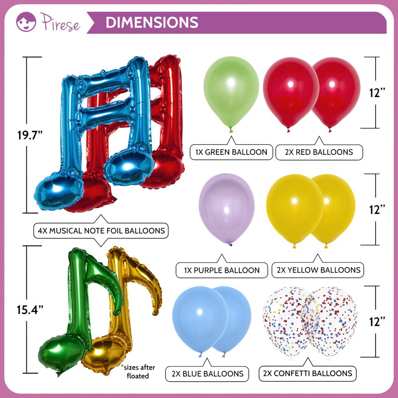 - COMPLETE ORCHESTRA INCLUDES: Set the stage for a unique musical birthday with 1x Music Happy Birthday Banner 6.6ft, 8x Colorful Music Balloons 12", 2x Confetti Balloons 12", 4x Colorful Music Note Balloons 16" and a curling ribbon for a harmonious rock star party decor.