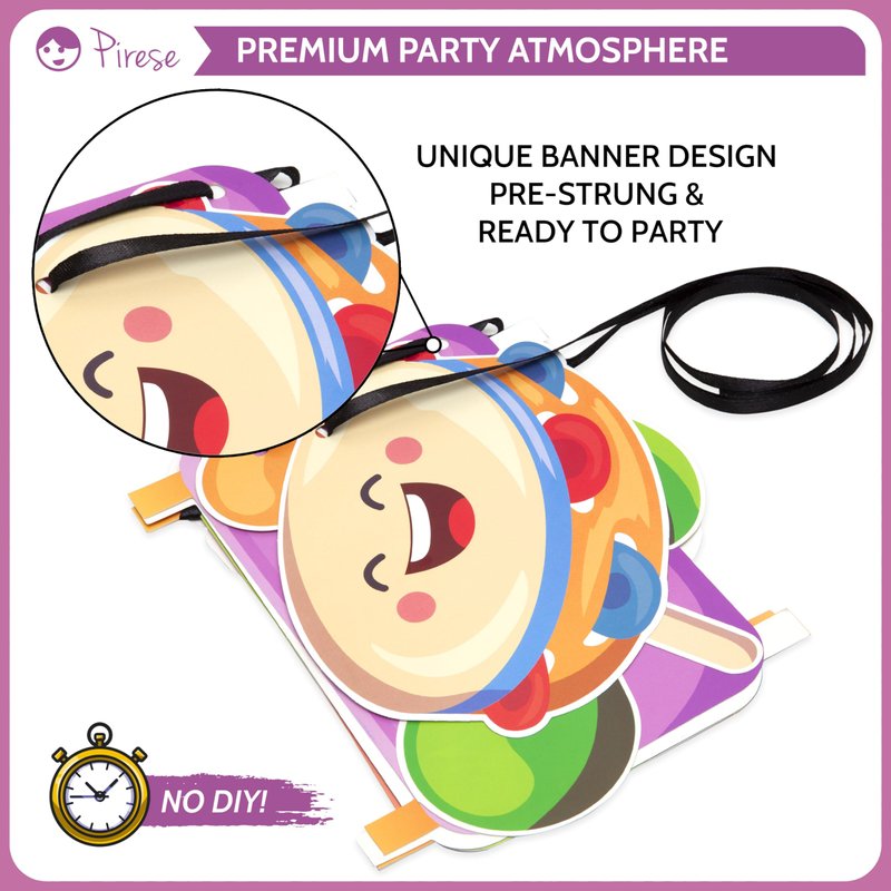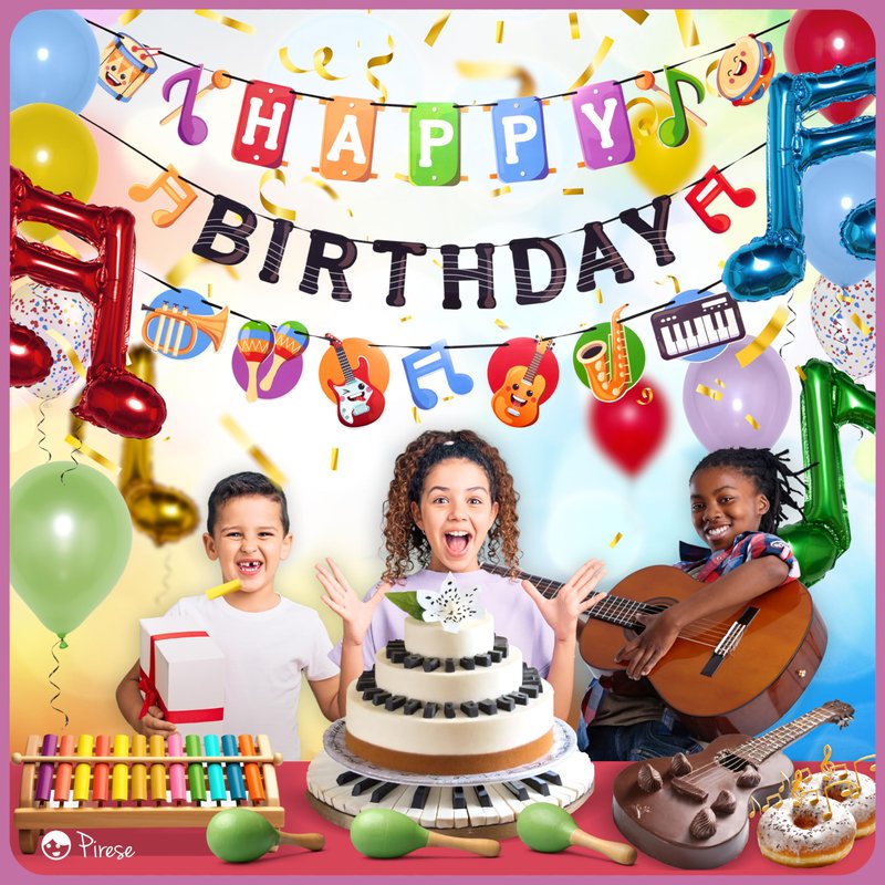 - UNLEASH THE RHYTHM OF FUN: Step up the beat for your child's special day with our exclusive, music-themed party decorations. Pre-strung and ready to dazzle, our banner is the perfect backdrop for a rocking music birthday party!