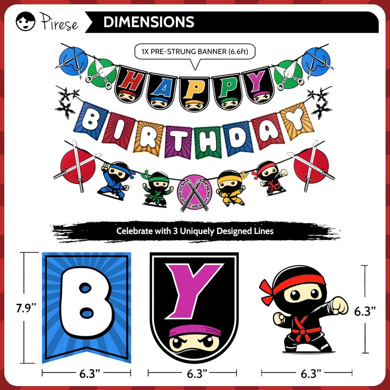 - CELEBRATE IN STEALTH MODE: Elevate your little warrior's celebration with our premium Ninja Birthday Party Decorations. The set includes a vibrantly printed, pre-strung 6.6ft banner, bringing a burst of color and ninja flair to any venue. Perfect for boys birthday party decorations or any aspiring ninja!
