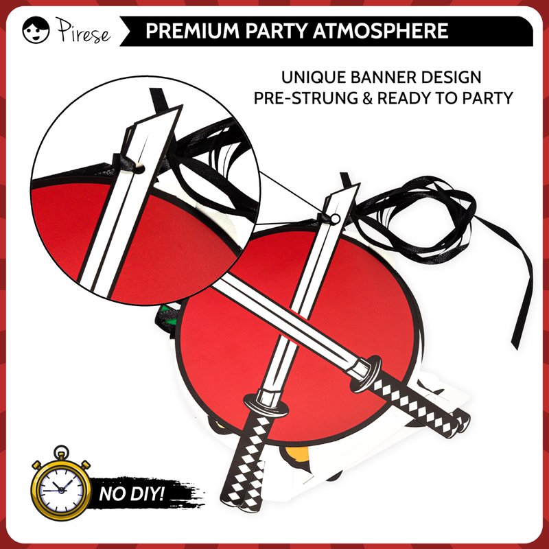 - EFFORTLESS SETUP, Maximum Fun: Say goodbye to party planning stress! Our ninja party kit, comes PRE-STRUNG and makes setting up a martial arts themed party decorations a breeze. Hang the banner, inflate the balloons, and let the energy and excitement fill the air!