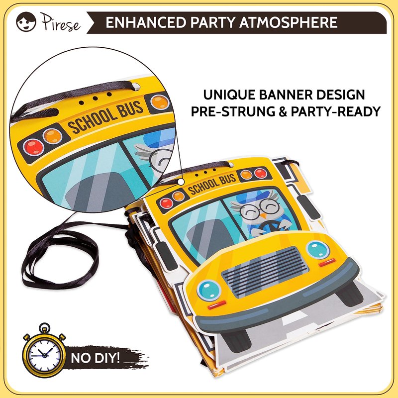 - Effortless Setup, Maximum Fun: Say goodbye to party planning stress! Our all-in-one kit, comes PRE-STRUNG and makes setting up a school bus-themed party a breeze. Hang the banner, inflate the balloons, and let the energy and excitement fill the air!
