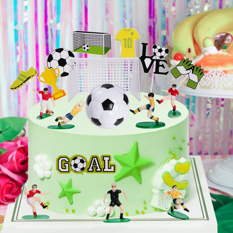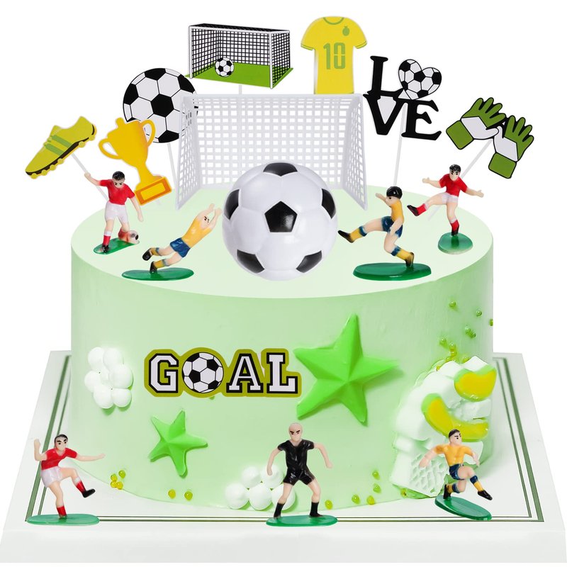 - SOCCER CAKE TOPPER DECORATION SET: The package include six soccer player figures cake topper, 1 football coach cake topper, two plastic goal, 1 soccer cake topper and 1 set soccer theme party cupcake topper, totally 18 pieces.
