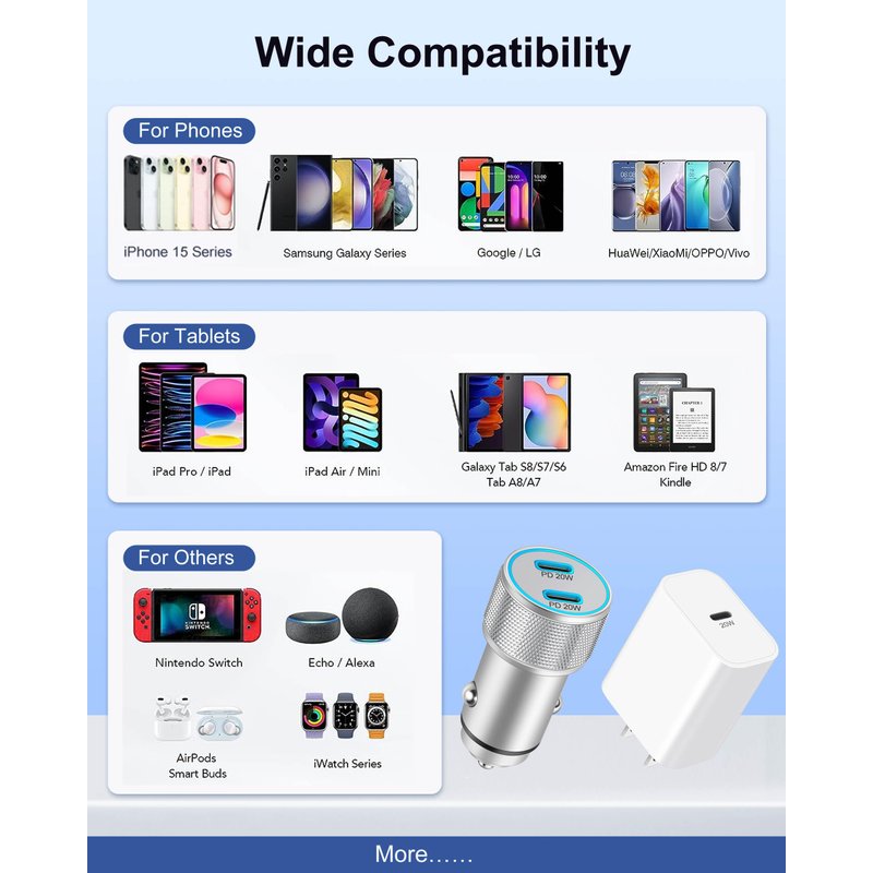 - 【20W USB C Charger】 20W PD USB C charger can charge 3X fast than 5W ordinary charger; with our 20W USB C Charger, most USB C devices can charge much faster than 5W/12W charger, Save you more time.