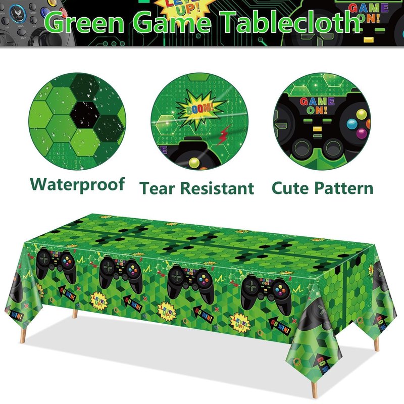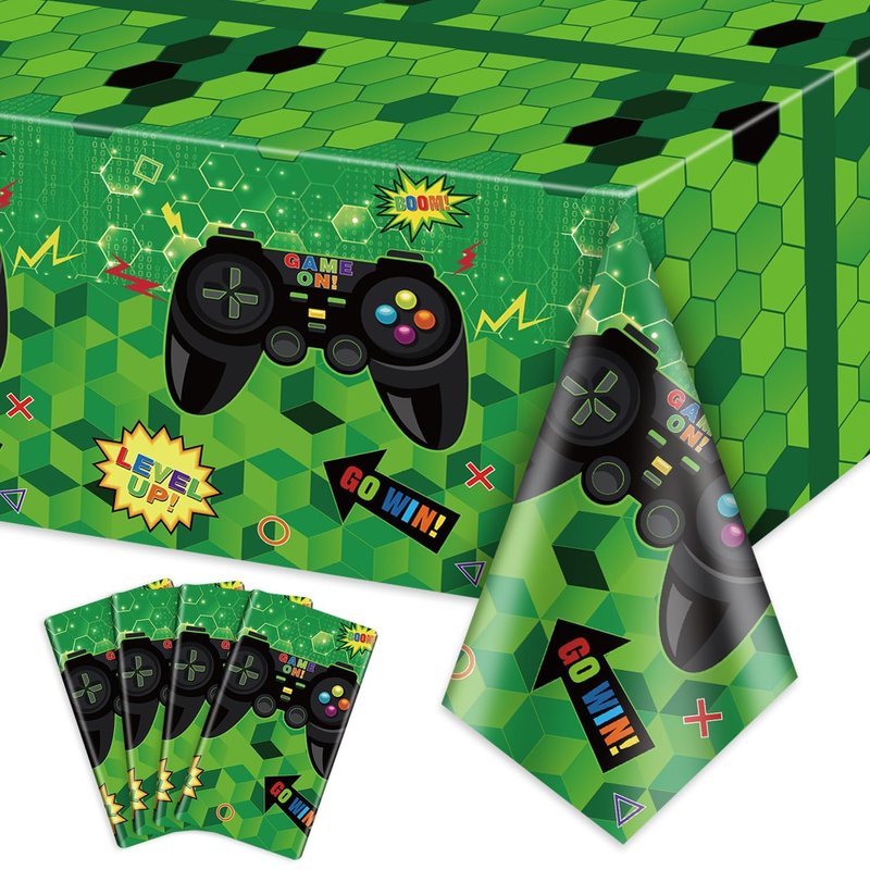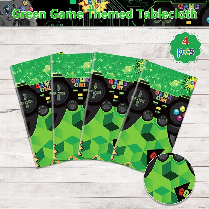 PIXHOTUL 4 Pcs Video Game Party Tablecloths, 51" x 86" Plastic Disposable Table Covers Blue Gaming Birthday Party Decorations for Boys Kids' Teens Party Supplies (Green, 51'' x 86'')