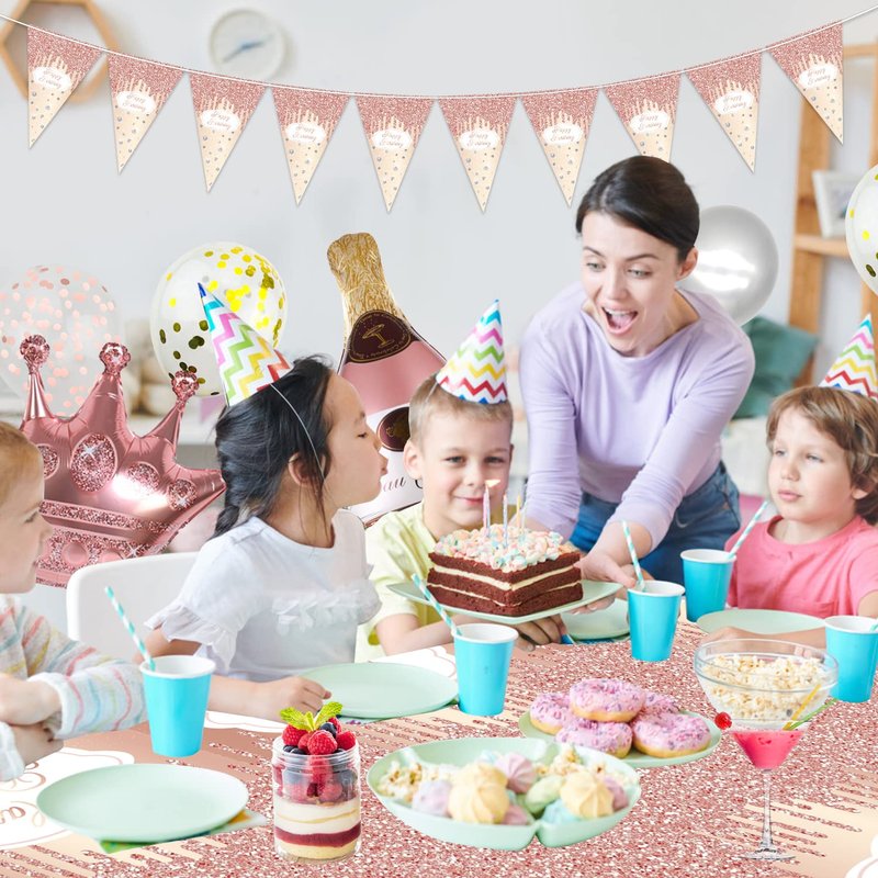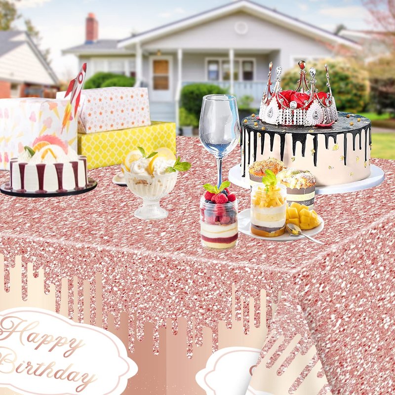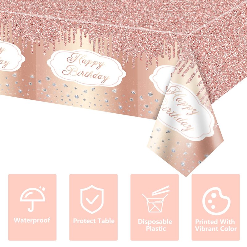 - Multi-Use: These rose gold table covers can be applied to different parties, such as girl's birthday, women's birthday, mom's birthday, girl's baby shower, etc. Special design will bring your party more fun and pleasure, and give your guests an unforgettable memory.