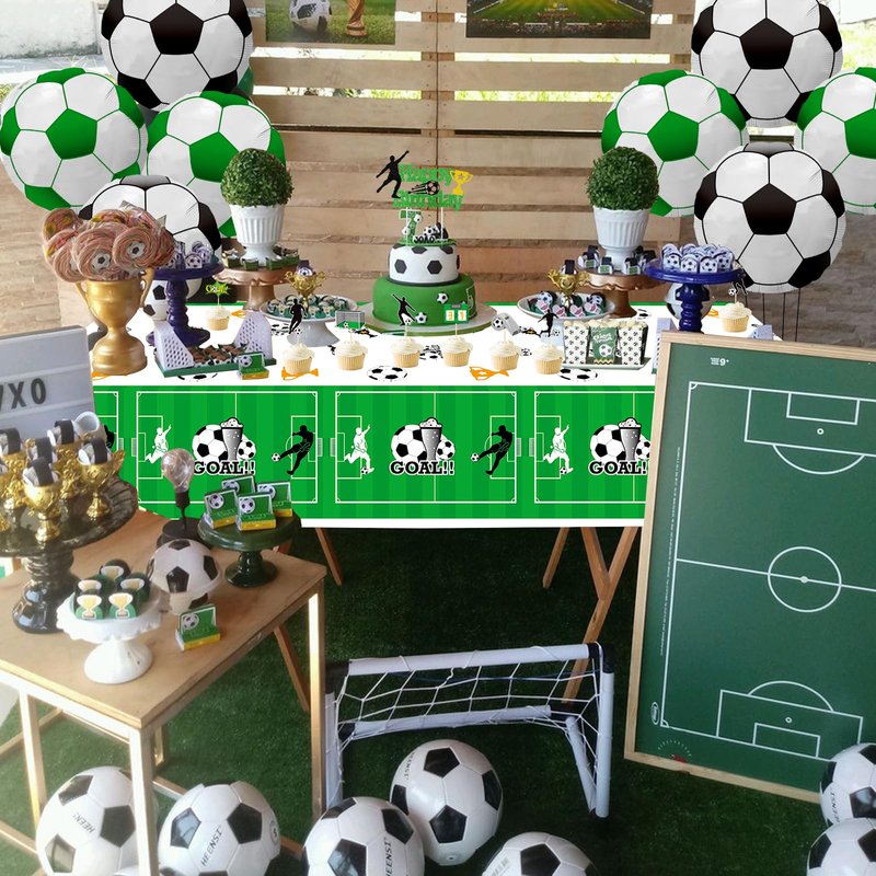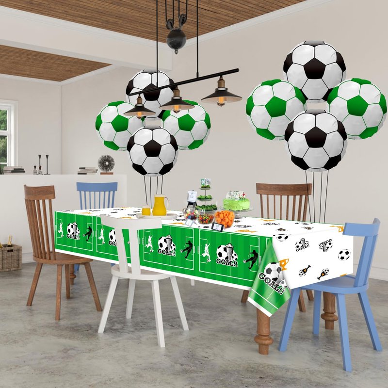 - Soccer Party Decorations Package Includes: 3 x soccer theme tablecloths(51x87"/130x220cm), the rectangular table cover is big enough for covering most table, 8 x soccer foil balloons(18 inches / 45cm).
