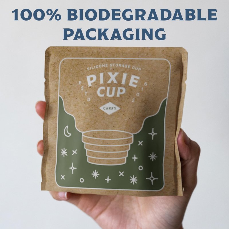 - Discreet. The Pixie Cup Sterilizing Container is great for a quick rinse in a public restroom. Fill with water, insert your menstrual cup and shake!