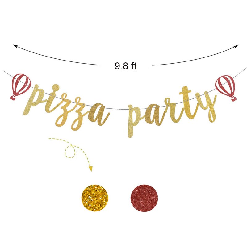 Pizza Party Banner,Pizza Party Time - Gold Gliter Baby Shower or Birthday Party Bunting Banner/Home Party/Fiesta/Birthday/Retirement/Italian Themed Party Decorations Paper Sign