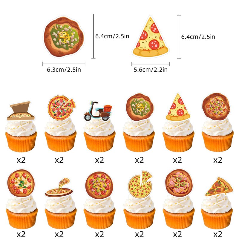 - 🍕【What You'll Get】1 set Pizza Happy Birthday banners, 1 pizza slice cake topper, 24 cupcake toppers with pepperoni and mushrooms, 18 balloons with sizzling pizza designs and Italian scenes. This deliciously appetizing pizza decoration set will infuse your celebrations with a touch of cheesy fun and savory charm! From the vibrant banners to the mouthwatering cupcake toppers and eye-catching cake decoration, every element is meticulously crafted with premium materials to ensure safety and durability.