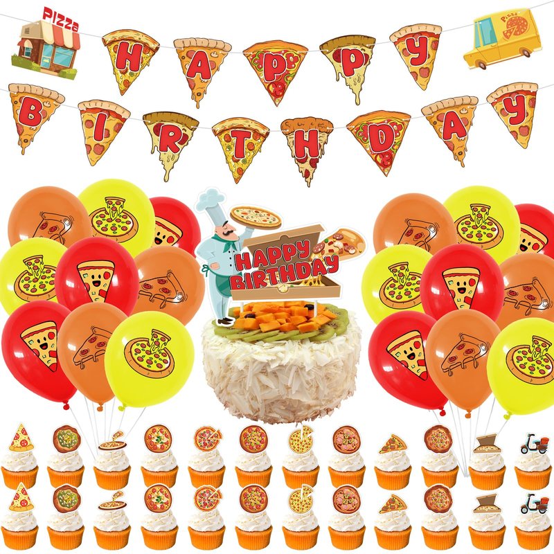 Pizza Theme Birthday Decoration Pizza Party Supplies with Happy Birthday Banner Cake Cupcake Toppers Balloons for Kids Boys Girls Birthday Baby Shower
