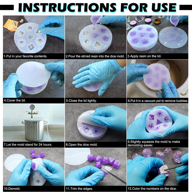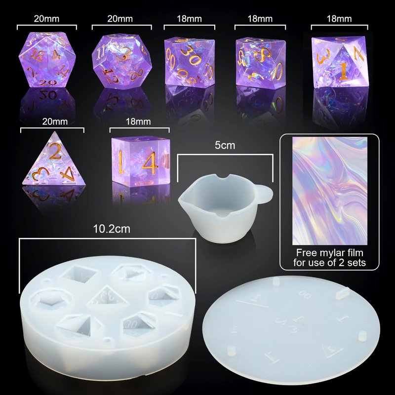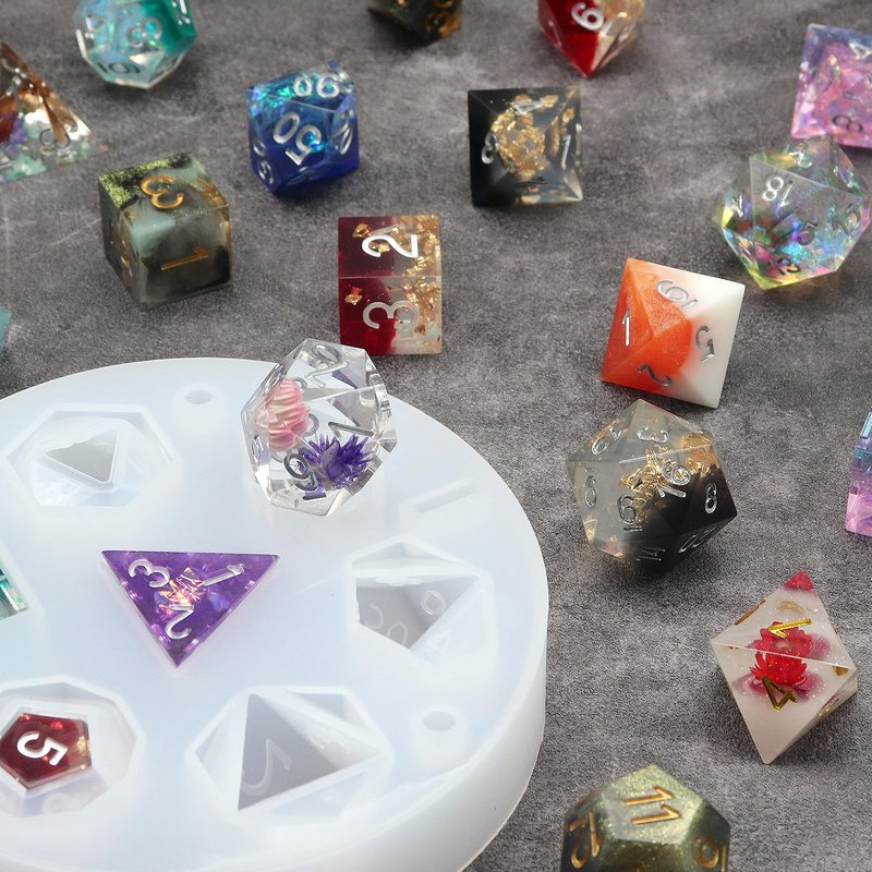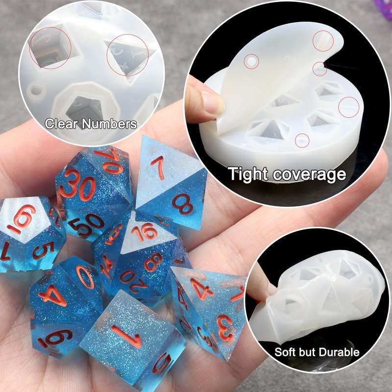 - Shiny Surface DND Dice Mold: With this DND dice mold, you can produce a complete set of 7pcs d&d resin dice with neat numbers and smooth surfaces. A lot of polishing work will not be needed