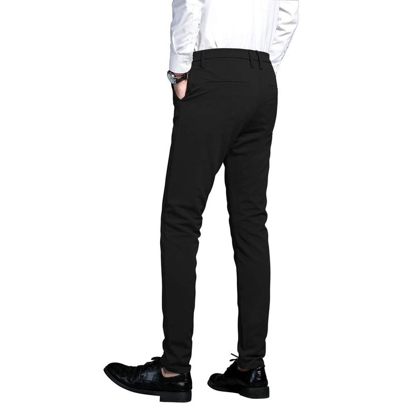 Plaid&Plain Men's Stretch Dress Pants Slim Fit Skinny Suit Pants 7101 Black 32W32L