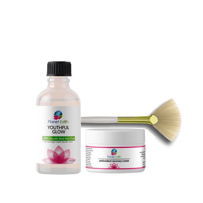 Planet Eden 50% Glycolic Acid Chemical Skin Peel Kit with Antioxidant Recovery Cream and Fan Brush - Diminish the look of Dark Spots, SUN DAMAGE, Wrinkles/fine lines, Age/Dark Spots