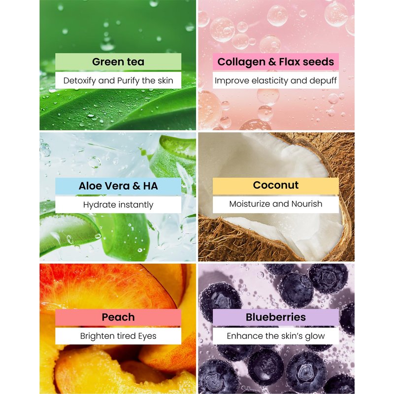 - TARGET DARK CIRCLES AND PUFFINESS: Utilize nutrient-rich superfoods like Green Tea Extract, Collagen, Peach, Coconut, Aloe Vera, and Hyaluronic Acid to revitalize under-eye areas effectively.