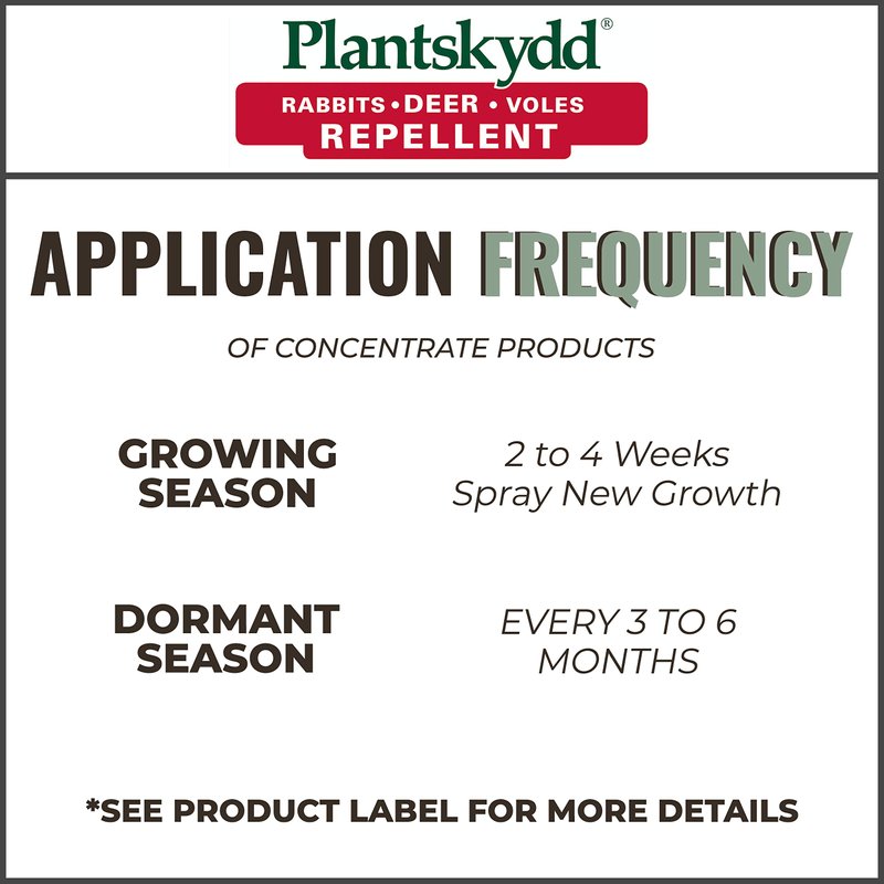 - Application frequency: Active growing season (2-4 weeks), Dormant Season (3-6 months). Bulbs (spray or dip before planting).