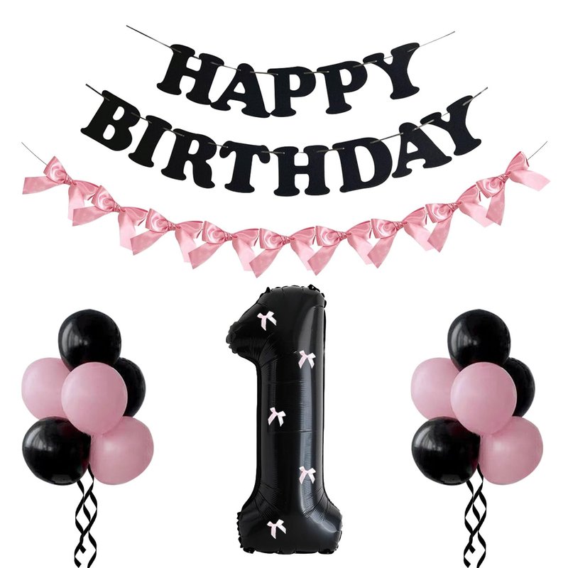 PLAP Birthday Number Balloon Bow Black Party Supplies 32 "Birthday Number Decoration (Pink black number set 1)