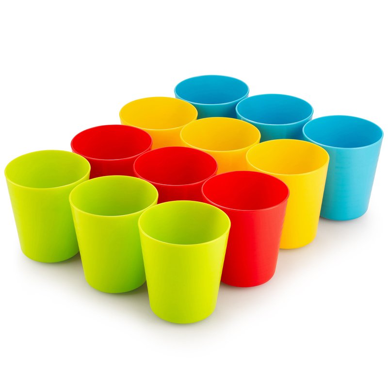 - KIDS PLASTIC CUPS set of 12 reusable kids plastic cups, in 6 assorted colors, 2 of each color. reusable plastic cups for kids