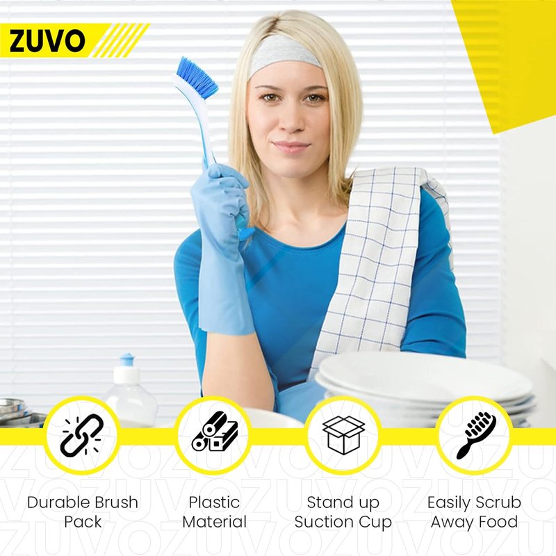 Zuvo's kitchen cleaning brush sets are great for cleaning pots, pans, kitchen sink bathroom, etc. The PET fiber bristles are high elasticity and durable material which provides the long-lasting life of the brush. Ergonomically curved shaped long handle fits perfectly in the hand, makes it easy to apply pressure while scrubbing. Features: Made with the PET fiber Soft long curved handle Dishwasher Safe Suction base for standing on a flat surface Perfect for pots, pans, kitchen sink bathroom Comes with Set of 3