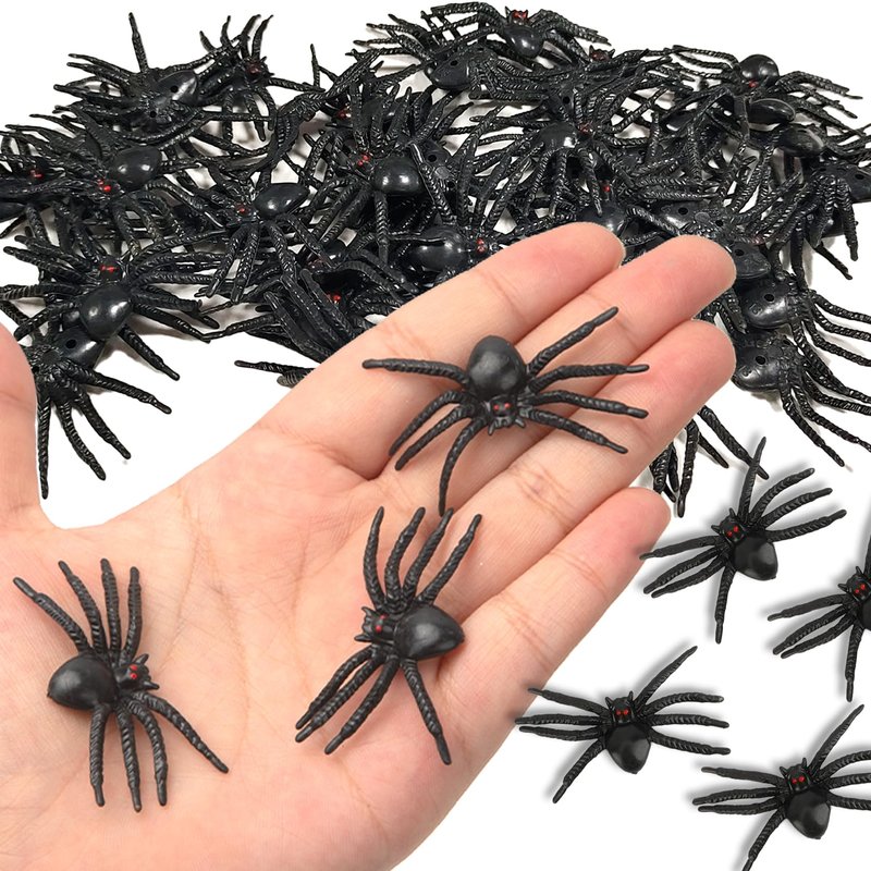 - REALISTIC FAKE SPIDERS: These Halloween plastic spiders are designed to mimic real spiders, especially the design of the marked red eyes, which makes them look like real spiders.