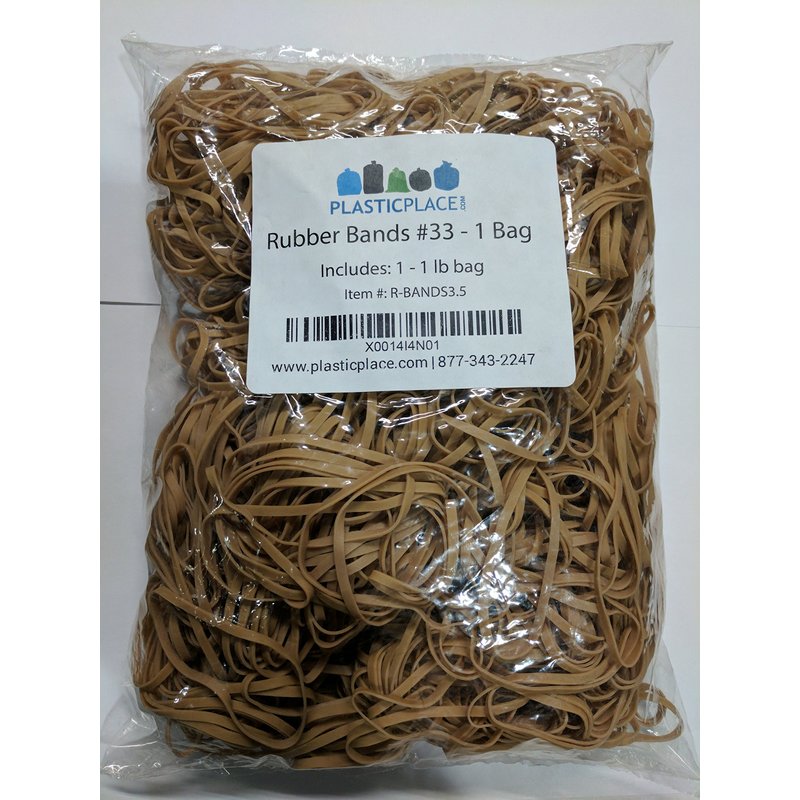 Plasticplace Rubber Bands, Size #33, Approx. 875 (3.5" X 1/8"), 1 Lb, 16 Oz, Brown