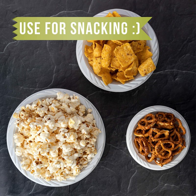 - Serve Your Meal In Style With These White Plastic Dinner Bowls! These Large Plastic Bowls Are An Essential Addition To Your Dinner Table. They Feature A Solid White Plastic That Allows Your Food To Really Shine. Use These White Plates For Any Occasion — Birthday Parties, Dinner Parties, And More!
