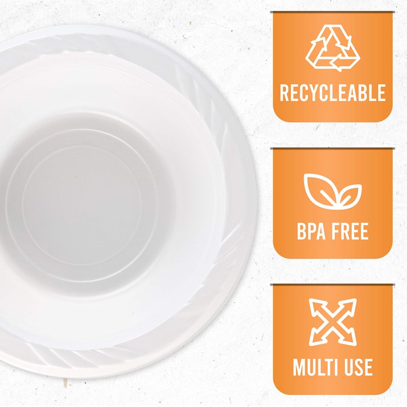 - Serve Your Meal In Style With These White Plastic Dinner Bowls! These Large Plastic Bowls Are An Essential Addition To Your Dinner Table. They Feature A Solid White Plastic That Allows Your Food To Really Shine. Use These White Plates For Any Occasion — Birthday Parties, Dinner Parties, And More!