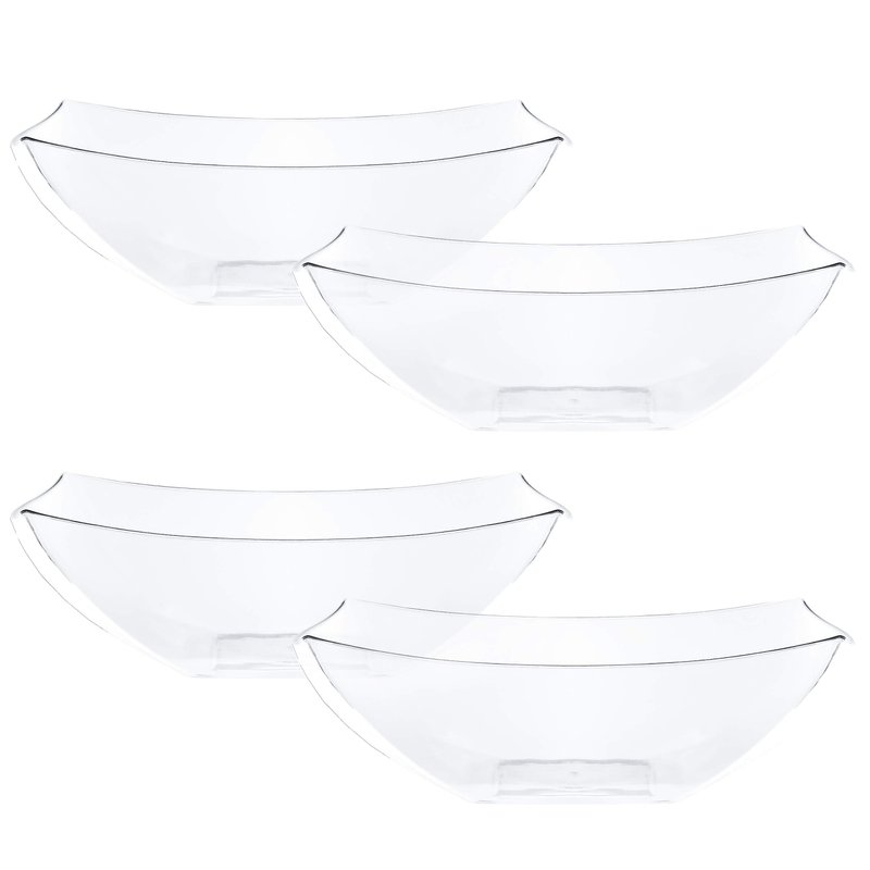 PLASTICPRO Disposable 32 ounce Square Serving Bowls, Party Snack or Salad Bowl, Medium, Plastic Crystal Clear Pack of 4
