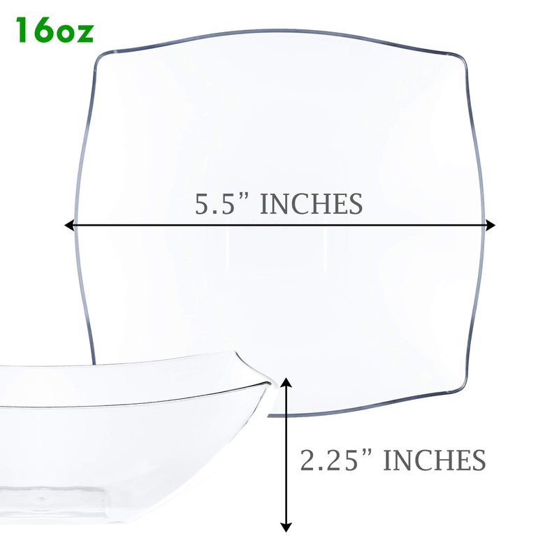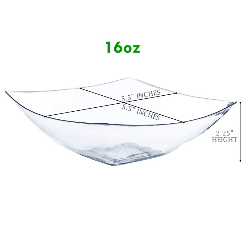 PLASTICPRO Disposable Square Serving Bowls, Party Snack or Salad Bowl, Plastic Clear or White Pack of 4 (16 OUNCE, Clear)
