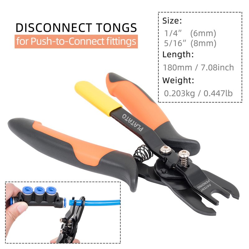 PLATATO Push-to-Connect Fittings Disconnect Tong Tool for Removing Push-fit Pneumatic Fittings 1/4”, 5/16” (6mm, 8mm) Quick Connect Air Hose Fittings Removal Tool