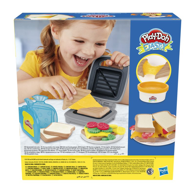 - SILLY SANDWICH PRESS - Create Play-Doh bread with the bread mold, add pretend melted cheese with Play-Doh Elastix compound, and squish it into the press to make a silly sandwich!