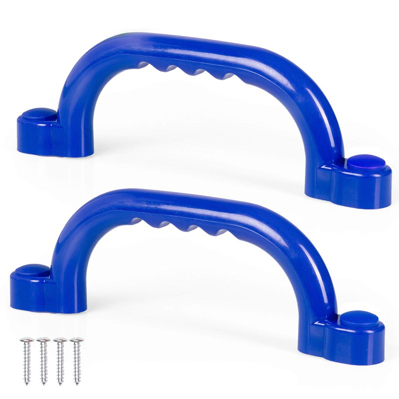 Playground handles help keep kids safe as they play, climb, and get great exercise! Includes free hardware for fast installation. Heavy duty material and a strong, durable design ensure these playground handle bars will last you and your family for years. These playground grab handles meet or exceed all ASTM safety standards. Includes two blue safety handles, four screw covers, and hardware.