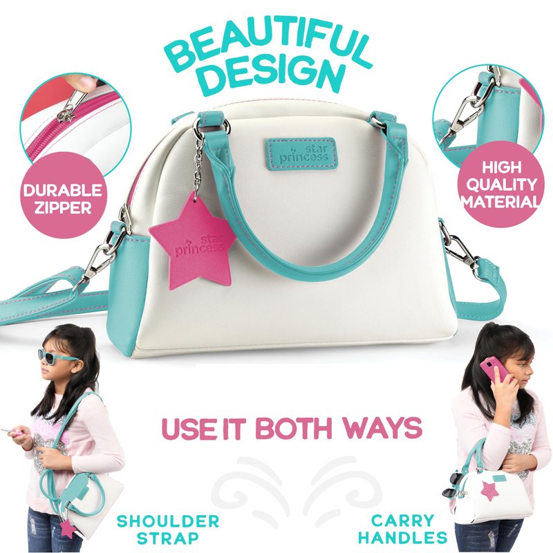 - REALISTIC PURSE - Featuring an elegant design with premium detailing, including neat contrast stitching, smooth quality zipper, carry handles, and a removable length-adjustable crossbody strap. The purse doubles as storage to keep neatly together all the included accessories and carry them along wherever she goes.
