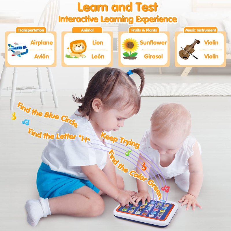 - Bilingual Educational Toy:Let toddlers and preschool children learn the alphabet,words,colors,shapes in Spanish and English,great baby tablet for 18 Month old up.Los mejores juguetes para niñas y niños!