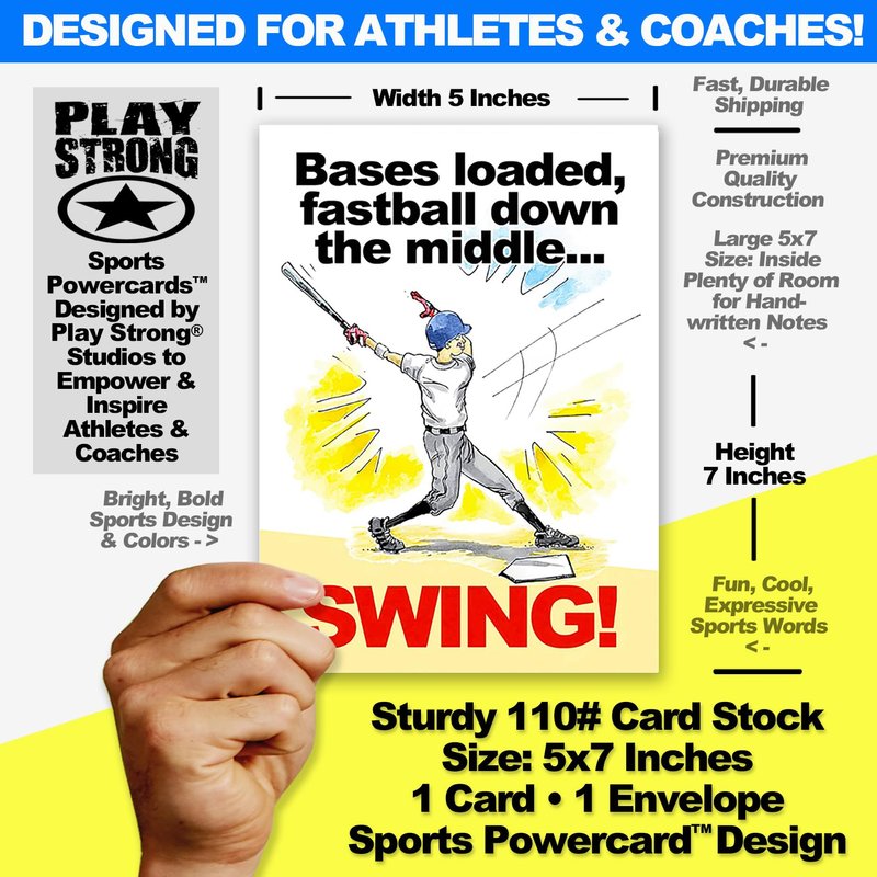 Play Strong Baseball Birthday Card 1-Pack (5x7) Power Player Illustrated Sports Birthday Cards Greeting Cards- Awesome for Baseball Players, Coaches and Fans Birthdays, Gifts and Parties!
